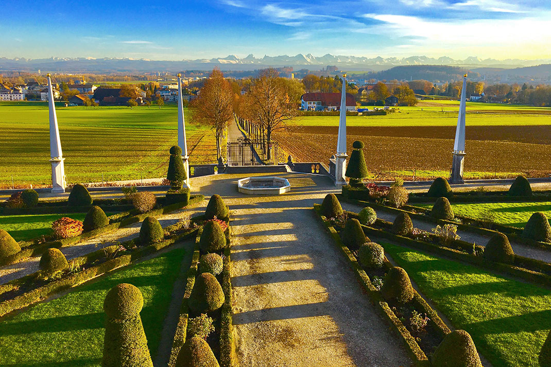 Waldegg Castle is situated on a hill at the foot of the Jura, in the middle of the idyllic recreational area of the baroque town of Solothurn. From the extensive grounds, the view sweeps over the Swiss Plateau to the Bernese Alps. Inspired by French and Italian influences, the powerful patrician Johann Viktor von Besenval from Solothurn had the magnificent house erected as his summer residence between 1682 and 1686. With the house, the avenues that extend far into the landscape and the wonderful gardens Besenval created a splendid baroque work of art.